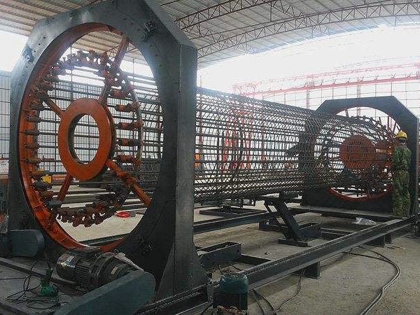 ◆ 加工速度快:正常情況下備料及滾焊部分 3人一班,分二班作業(yè),6個(gè)人一天就可以加工出 30多個(gè) 12米長成品的籠子(備料、滾焊、加強(qiáng)筋安裝、探測管安裝、導(dǎo)向墊塊安裝等),工作效率非常高。